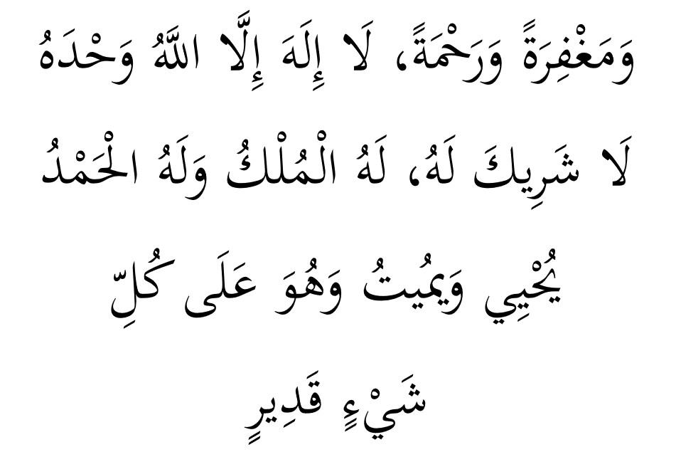 Wamaghfirotaw Warahmah, Laa ila Ha illallahu Wahdahu Laa Syariikalah, Lahul-Mulku Walahul Hamdu Yuhyi Wa Yumitu, Wahuwa ‘Ala Kulli Syai-in Qadir